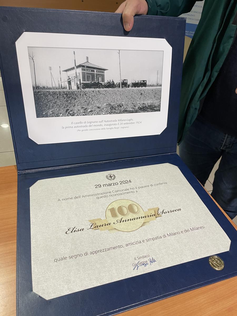 Una mattinata piena di gioia, quella del 29 marzo 2024: la signora Elisa Sorreca ha spento ben 100 candeline su una grande torta appositamente preparata per l’occasione e consegnatale dal marito. Non solo: perché Elisa ha ricevuto in dono anche una riconoscenza davvero speciale, l’Ambrogino d’oro, da parte delle autorità del comune di Milano, oltre a un meraviglioso bouquet di fiori da parte della Struttura, dove vive da ormai qualche anno, dal 2019. Ecco il racconto della vita di questa formidabile signora.