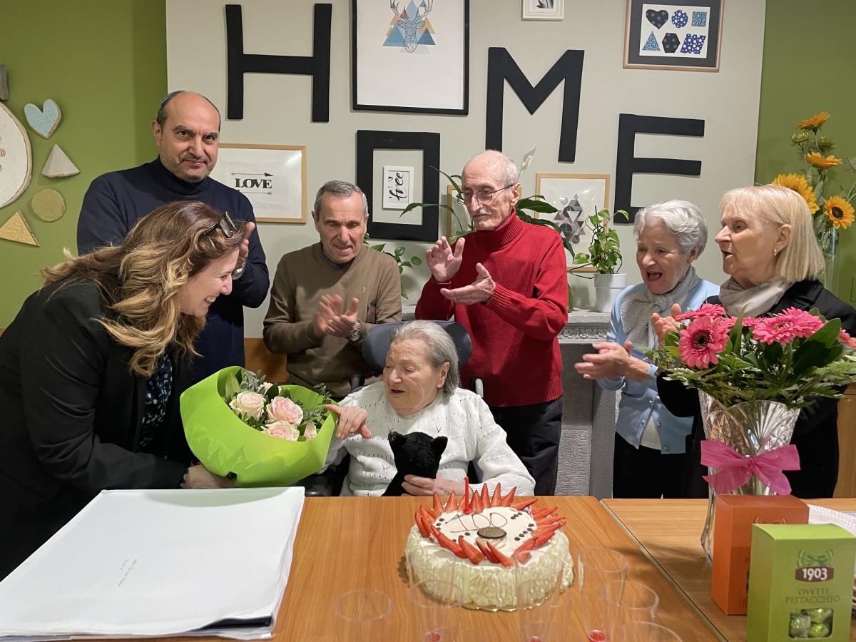 Purtroppo all’età di 93 anni inizia il decadimento fisico e psichico portandola al ricovero presso la nostra struttura nel 2019. Da allora ha superato in maniera egregia Covid e altri malanni, fino ad arrivare ai 100 anni festeggiati in struttura insieme a tutto lo staff, che l’ha celebrata con grande calore. Anche il padre della signora ha avuto una vita molto longeva, raggiungendo il traguardo dei 101 anni.